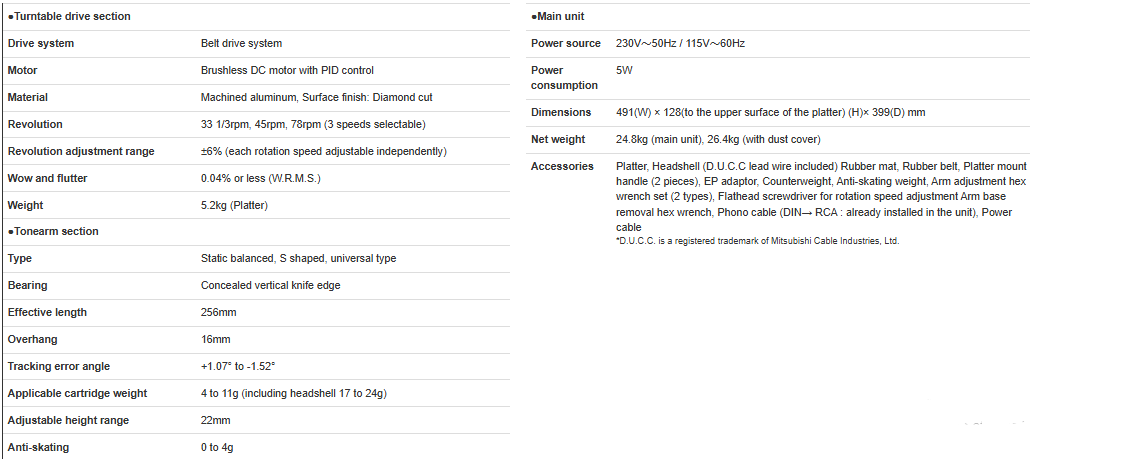 The underslung suspension structure, in which the main components are attached to a 15mm thick aluminum plate, has succeeded in achieving both high rigidity and damping performance. Also, by mounting the motor drive system and power transformer on an extra thick bottom plate, insulated with damping rubber, delicate signal pickup is protected from external vibrations, greatly improving the mechanical S/N ratio (rumble) and feedback resistance.