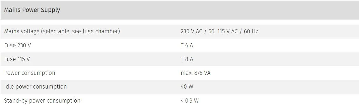 The mains voltage from the mains power socket is transformed to the required secondary voltage in the device’s internal linear power supply with toroidal transformer. Rectifiers convert this AC voltage into DC voltage required in the audio device.