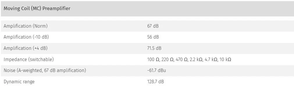 The MC pickup is also a small electromagnetic generator, but with the magnets firmly anchored and the coils moving between them, i.e. exactly the opposite of the MM pickup. The output voltage, however, is very low at only a few hundred microvolts and is therefore more sensitive to noise and induced hum. This makes preamplifier design a challenge, because the very low output voltage must be pre-amplified extremely noise-free. Phonos offers one of the most powerful phono preamplifiers for MC systems with up to 71.5 dB preamplification. Thanks to the 120V technology, the preamplifiers are extremely low-noise, linear and phase-locked. MC pickups have a very low inductance and impedance.