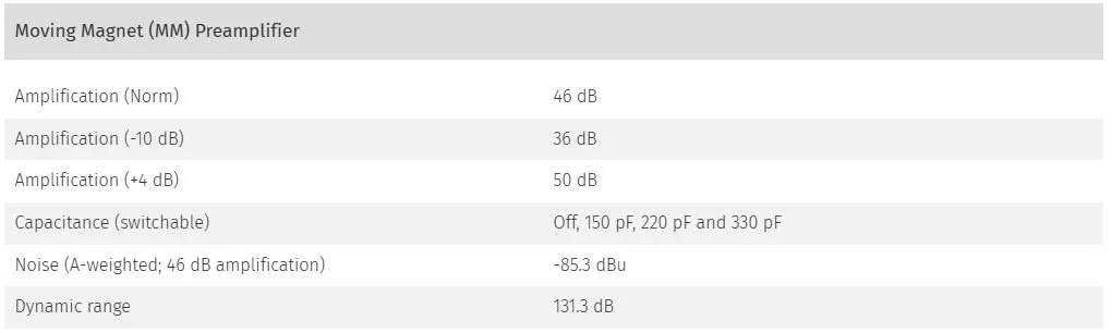 If the switch is in the “+4” position, the gain is increased by +4 dB (MM = +50 dB, MC = +71 dB). So the output level is about as loud as that of modern DA-converters at a reference level of 0 dBfs = 15 dBu.